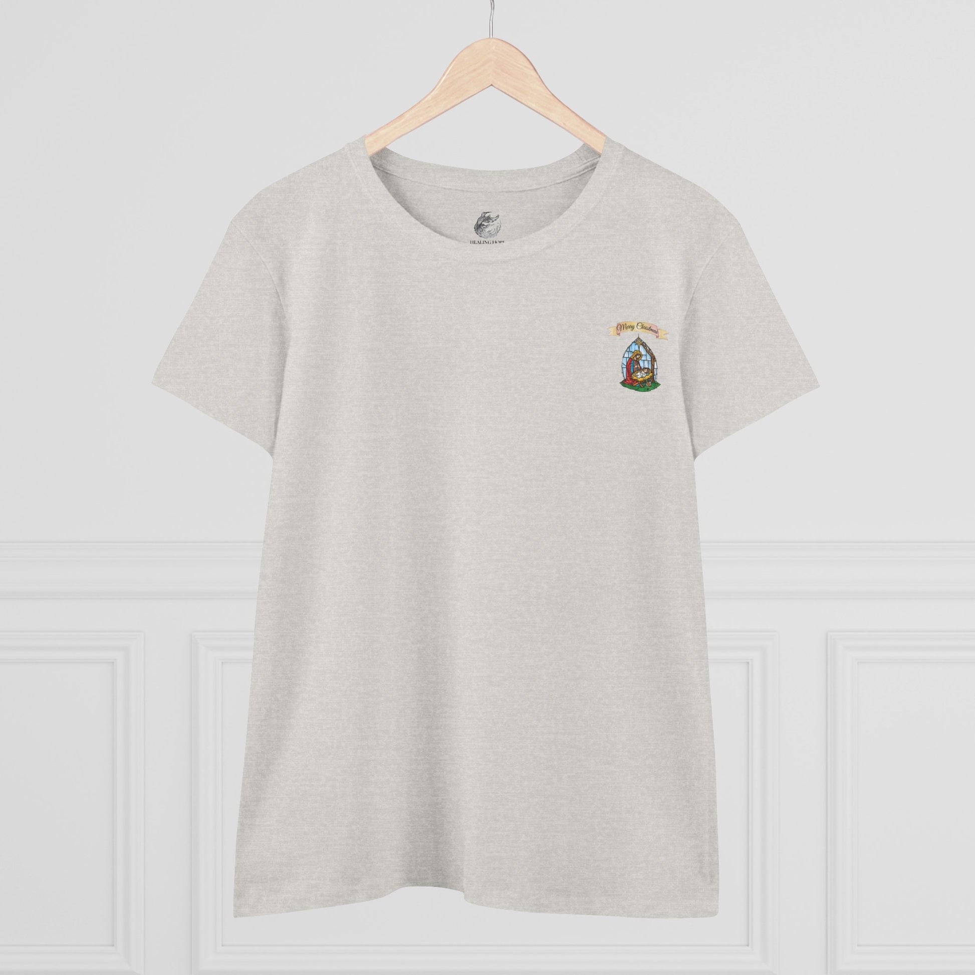 Soft, breathable cotton shapes a tee that feels like a quiet breath at the center of a Christmas evening. A small, subtle emblem on the front keeps the look understated. On the back, a luminous stained-glass–style scene unfolds: two angels framing a radiant star above the words “Oh Holy Night.” Wear it layered under a cozy cardigan or alone as the focal piece — it reads like a gentle hymn in fabric, carrying the warmth and hush of candlelight services and family gatherings. The semi-fitted cut follows natural lines without clinging, while durable double-stitched hems and taped shoulders keep the silhouette steady through many holiday seasons. Tear-away label and medium-weight cloth make it comfortable for long evenings and seasonal traditions.