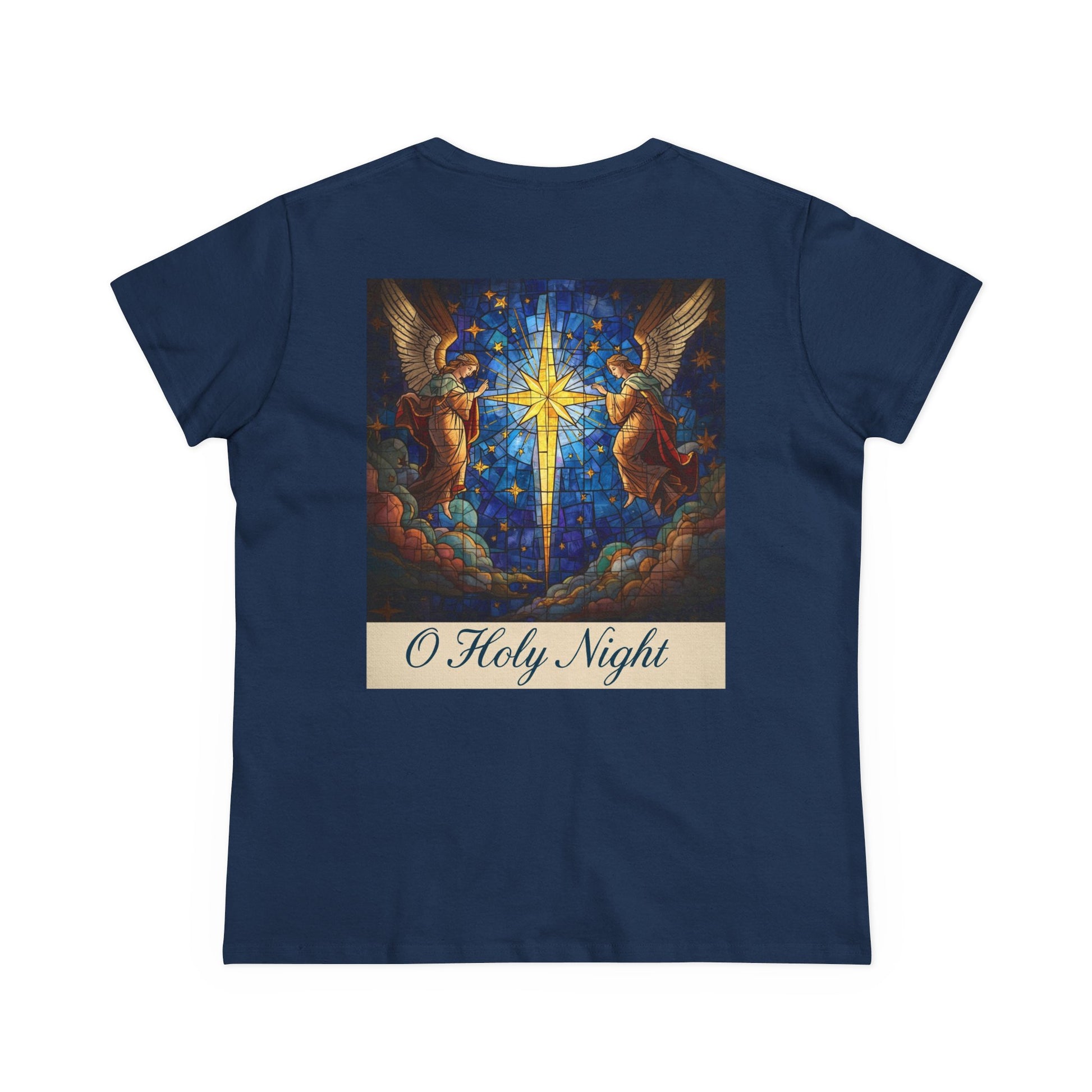 "O Holy Night" Women's Tee — Christmas Angels Star Graphic Cotton Shirt